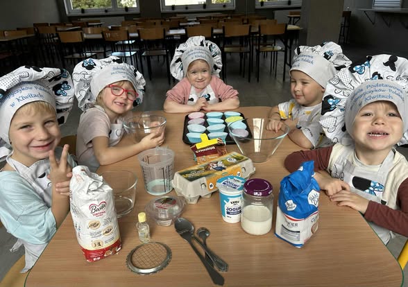 Czytaj dalejDziś nasze najmłodsze przedszkolaki zamieniły się w prawdziwych małych kucharzy i cukierników! Na początku zajęć dzieci rozpoznawały, nazywały i liczyły