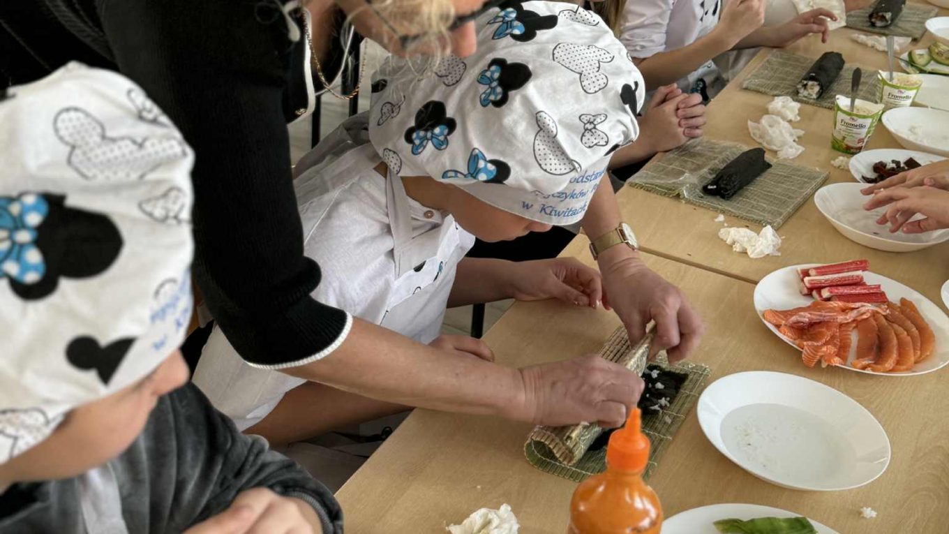 Czytaj dalejDziś klasa V zamieniła salę w małą kuchnię japońską, bo pani dyrektor Bożena Pelik-Ogonowska poprowadziła warsztaty robienia sushi. Z pasją